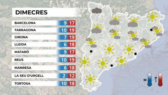 A partir de dimecres la situació tindrà una altra cara. Aquells qui trobaven a faltar el sol i la suavitat estan d’enhorabona, ja que dimecres el sol lluirà a gran part del país, especialment al matí.